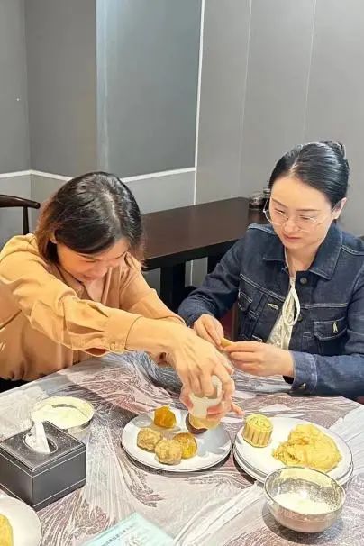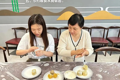 晶瑩剔透的餅皮、沁甜馥郁的餡料、精致的雕花模具,在專(zhuān)業(yè)老師的指導(dǎo)下,變成一個(gè)個(gè)美味的月餅。