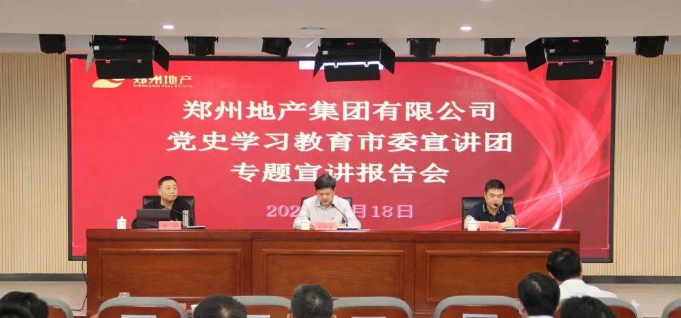 為持續(xù)推進黨史學習教育走深走實,5月18日上午,鄭州市委宣講團走進鄭州地產(chǎn)集團,在集團301多功能廳開展黨史學習教育專題宣講報告會。報告會由鄭州市委宣講團成員、鄭州工程技術學院馬克思主義學院副教授張豪主講,市國資黨史學習教育第二巡回指導組組長、四級調研員段德強,指導組成員張詩雨、陳祥斐到會巡聽旁聽,地產(chǎn)集團領導班子、總部全體員工,各子公司支部書記、黨建部門負責人等共計150余人參加現(xiàn)場報告會,各子公司員工共計170余人通過線上直播進行觀看,會議由地產(chǎn)集團黨委書記、董事長萬永生主持。