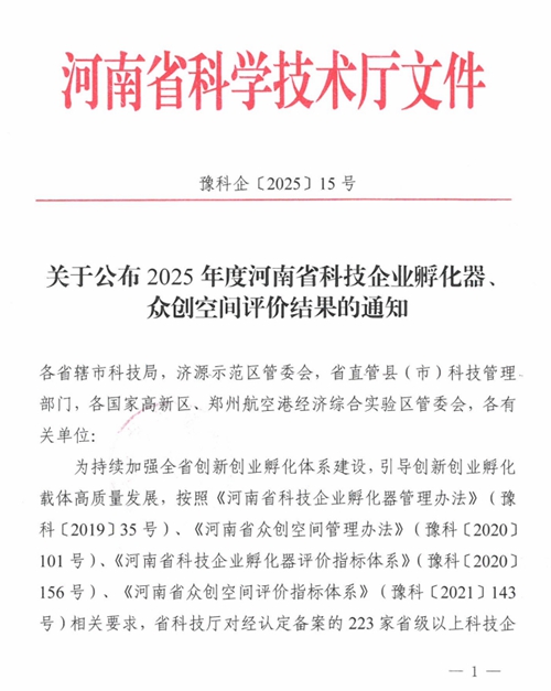近日,河南省科學(xué)技術(shù)廳正式發(fā)布《關(guān)于公布2025年度河南省科技企業(yè)孵化器眾創(chuàng )空間評價(jià)結果的通知》(豫科企〔2025〕15號),鄭州城發(fā)集團金岱智慧產(chǎn)業(yè)園憑借扎實(shí)的孵化服務(wù)能力、突出的創(chuàng )新培育成效,在全省223家省級以上科技企業(yè)孵化器的嚴格考評中脫穎而出,榮獲最高考核等級——“優(yōu)秀(A類(lèi))”!