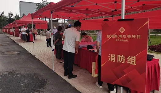 鄭地新港華苑項目于2021年8月26日下午,順利完成由鄭州市城建局牽頭組織,人防、消防、質(zhì)監(jiān)、規(guī)劃等部門共同參與的聯(lián)合驗收,是疫情期間第一個通過聯(lián)合驗收的建設(shè)項目。為嚴格落實鄭州市新冠肺炎疫情的防控要求,新港華苑項目部提前制定了周密的疫情防控方案,采取了妥善的疫情防控措施,有序組織進入院區(qū)人員掃健康碼、檢查48小時核酸檢測結(jié)果、測量體溫、酒精消殺、分發(fā)防疫包等。經(jīng)過啟動儀式、書面匯報、現(xiàn)場巡查、聯(lián)動測試等環(huán)節(jié),鄭地新港華苑項目順利完成聯(lián)合驗收工作。